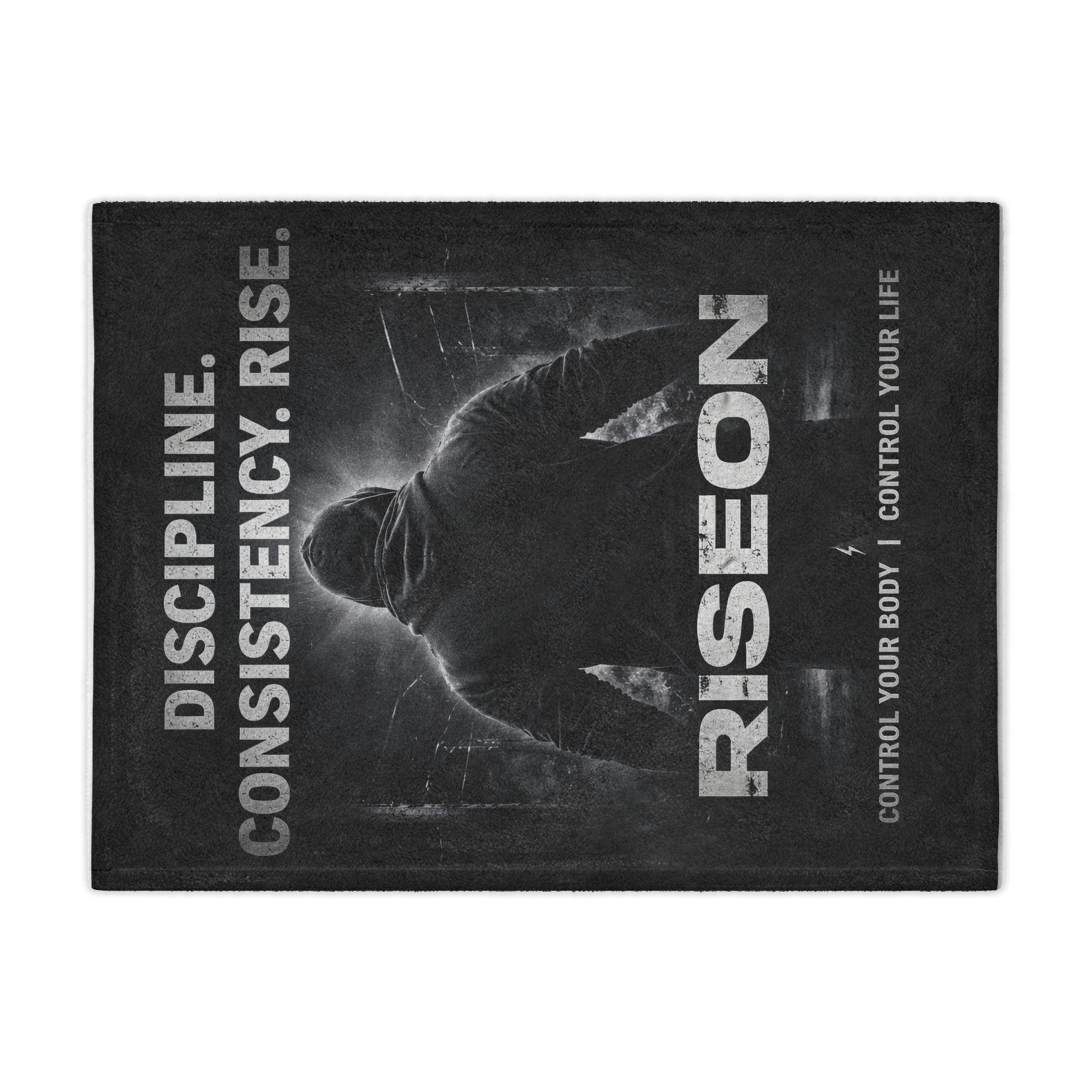Designed for those who move with purpose, the Riseon Discipline Blanket blends comfort with conviction. Set in a dark, monochrome aesthetic, the design features a hooded figure advancing toward light—symbolizing progress, control, and relentless consistency. The bold statements DISCIPLINE. CONSISTENCY. RISE. and RISEON are stamped with clarity, serving as a constant reminder that growth is built in quiet moments as much as in hard effort.